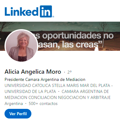 - Mediadora del Ministerio de Justicia y Derechos Humanos de La Nación.